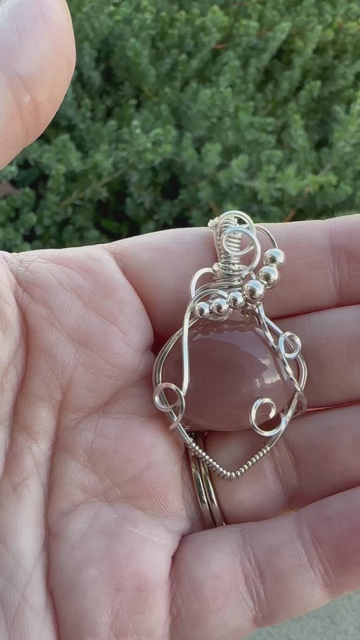Oval Peach Moonstone Handmade Wire Wrapped Pendant